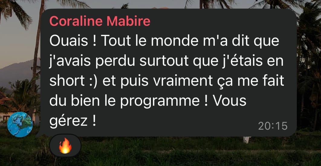 Oui tout à fait ! Tout est sur mesure selon ton profil, tes contraintes, ton travail. Avoir un programme qui s'adapte à toi est la clé !
