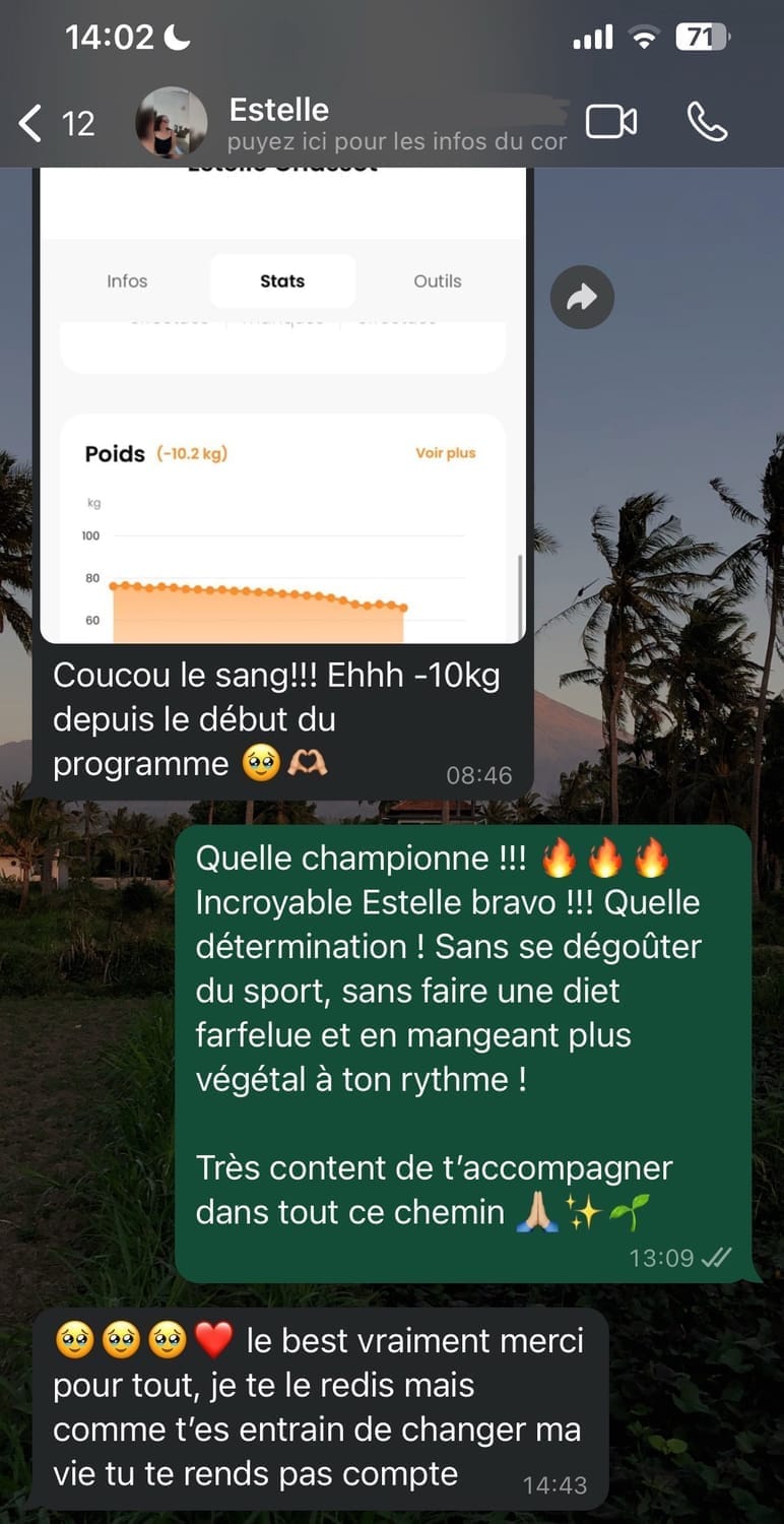 Oui ! Tu reçois un plan 100% végétal sur mesure pour toi, pleins de recettes protéinées que j'ai créées. Mais la différence majeure, c'est qu'on ne veut pas que tu suives un plan à la lettre. On va t'aider à comprendre comment atteindre ton objectif en mangeant la nourriture que tu aimes, sans bannir tes plaisirs, sans devoir suivre un pan stricte.